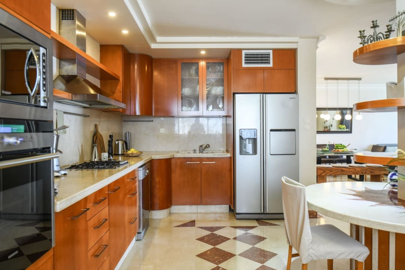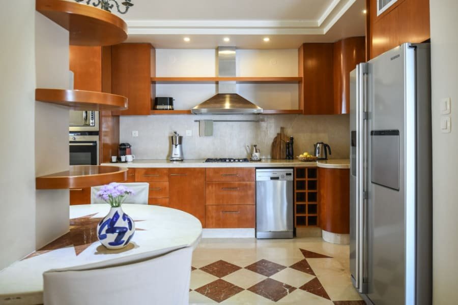 Fully equipped kitchen with oven, stove, microwave, dishwasher, Nespresso machine, and all cooking essentials