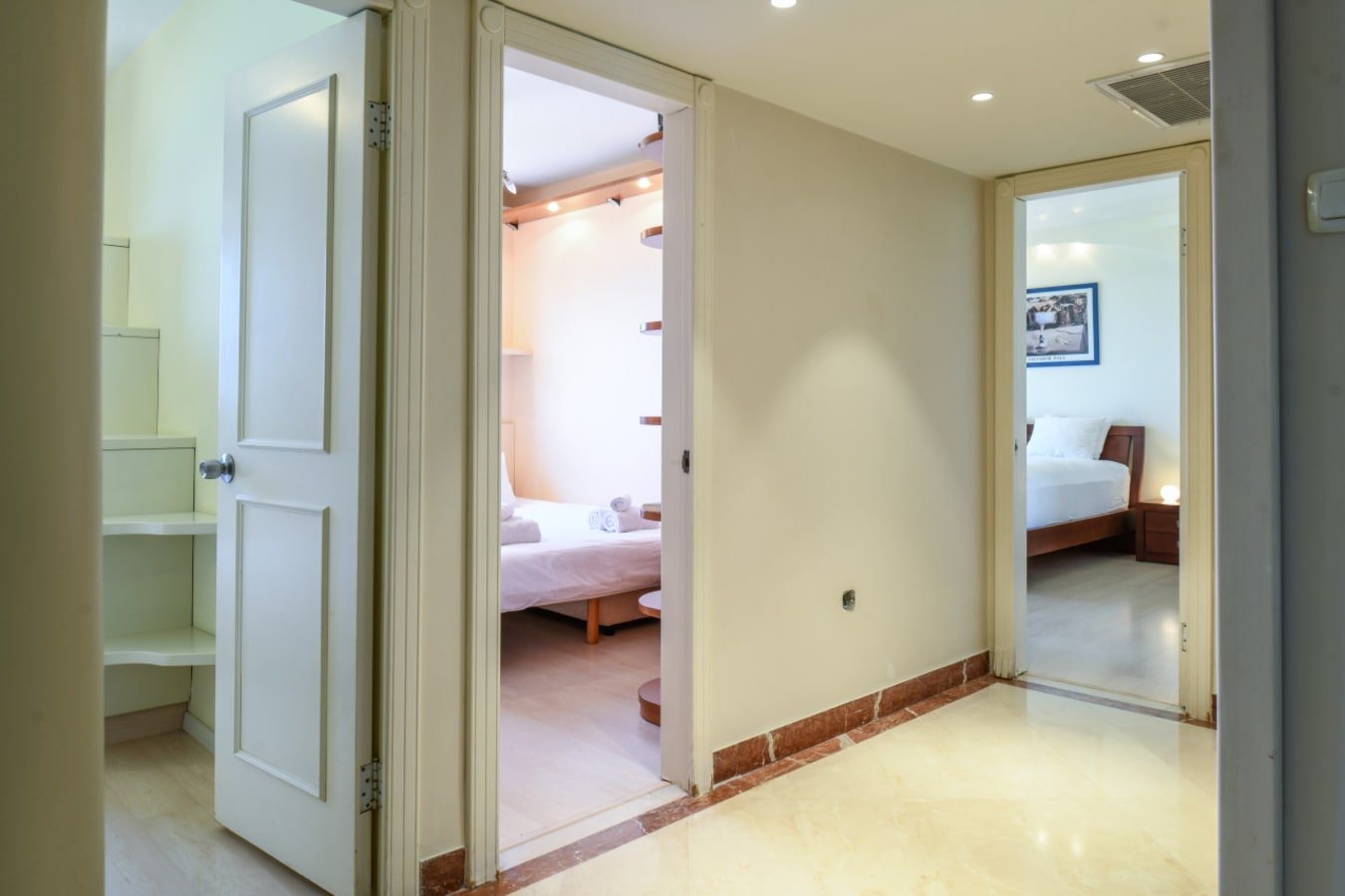 4 bedrooms with soft linens, ample storage, and natural light