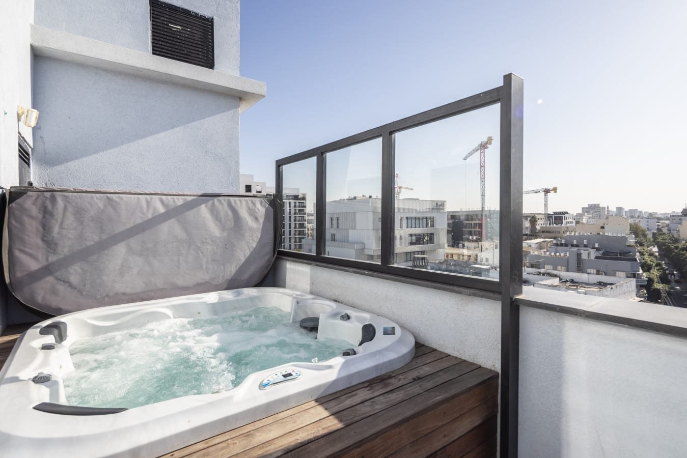 Private hot tub jacuzzi – relax under the stars with the Tel Aviv skyline as your backdrop